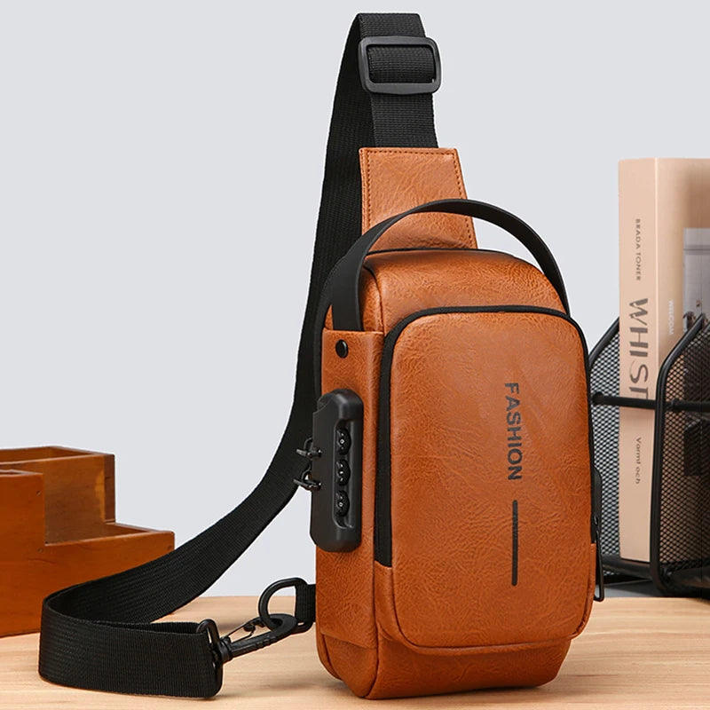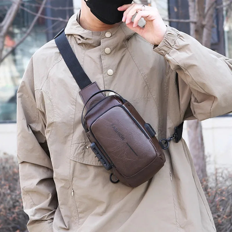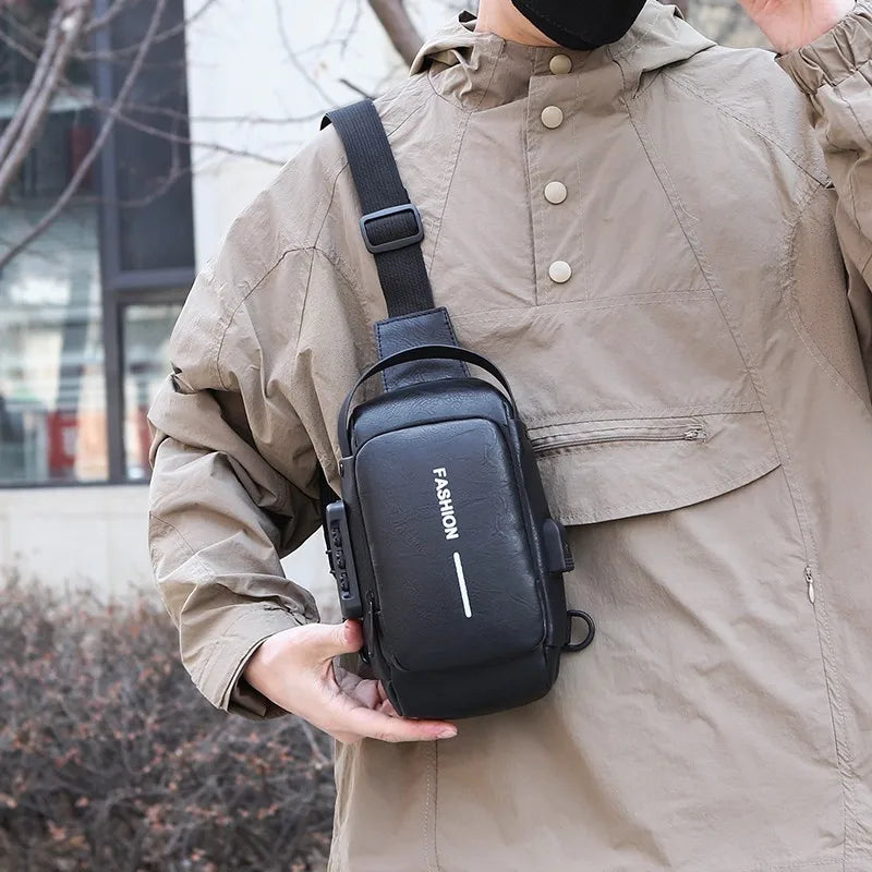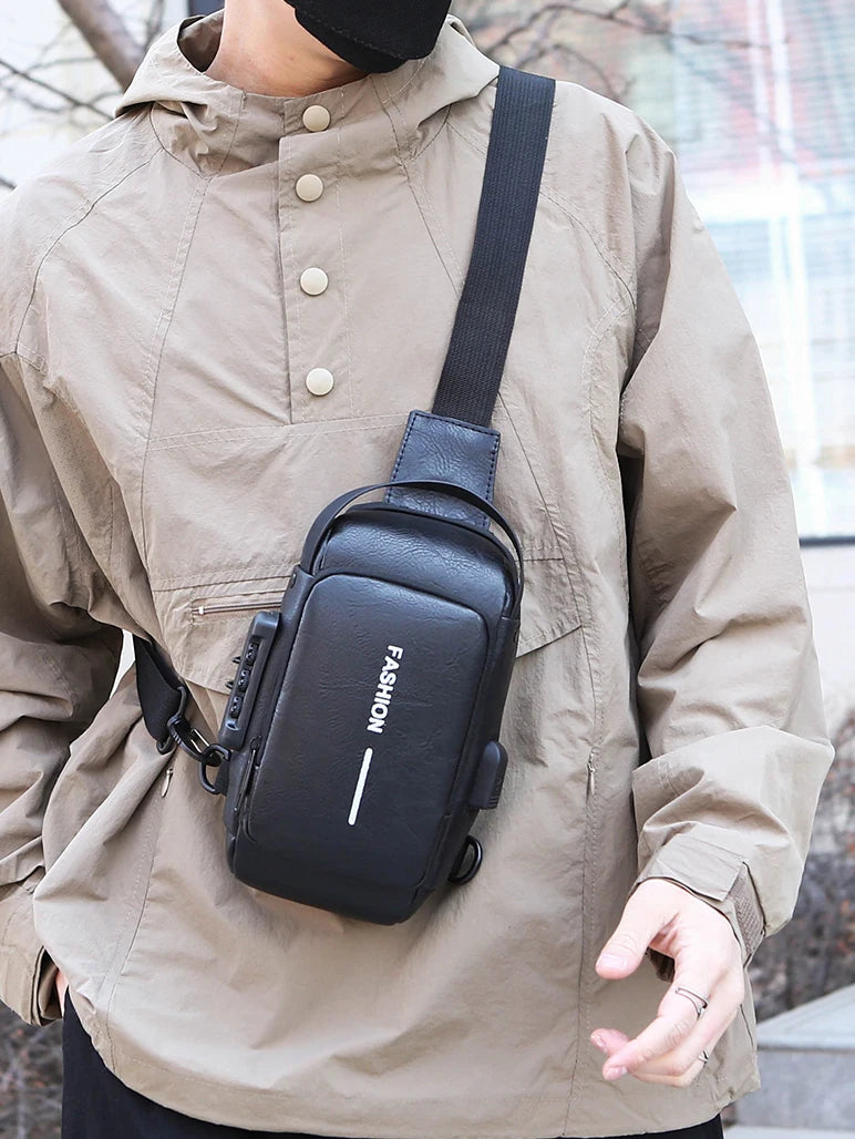Men's Multifunction Anti-theft USB Chest Bag, Sling Shoulder Bag, Password Lock Crossbody Bag Suitable for Cycling